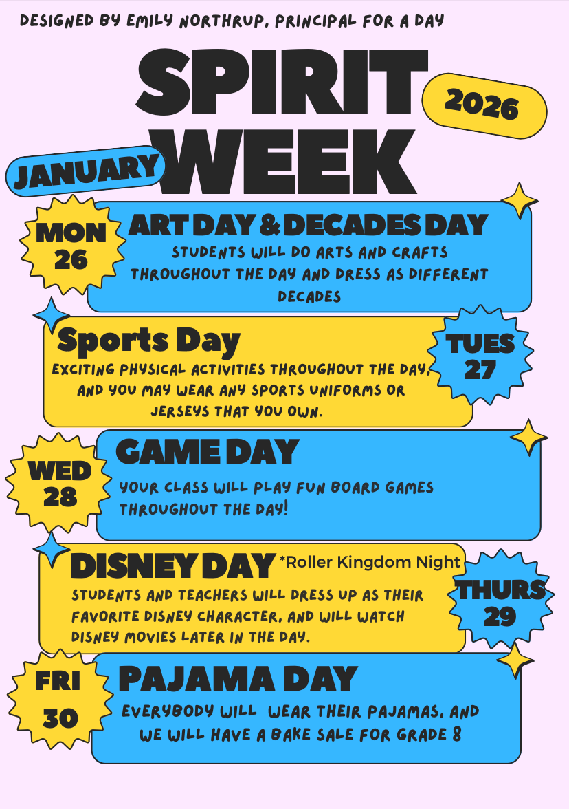 Wednesday: there will not be a school mass, however, students and staff are encouraged to enjoy Sports Day by wearing their favorite sports jerseys.